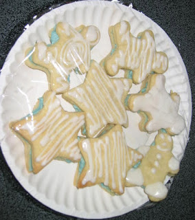 We chose a night last week to decorate the kids' Christmas trees. First Phillip showed them how to make bells out of egg cartons, foil and nice thick ribbon. We listened to George Strait's "Merry Christmas Strait to You" CD while the kids made these decorations. Then they decorated their trees which are up in their bedroom. Phillip read them a Christmas book after that and we all had hot cocoa with whipped cream (we're out of marshmellows).