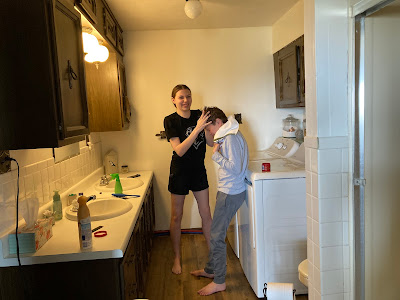 Harrison's birthday present to Phoebe was giving her 15 minutes for her to fix his hair however she wanted. She's been dying to put lots of pomade in it and part it down the middle like a 1920's style.