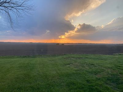 We had the weirdest storm come through last Thursday. Harrison and I were driving home from town and saw what I thought was a really low, wide cloud on the ground. Then I thought it was smoke, but it covered a huge area as if it were a prairie fire. I finally realized it was just dirt being whipped up into the air. We got home to find one of our tree trunks down and lots of wind. It passed fairly quickly and we got a little rain. Some people got lots of hail. Some people said they saw tornadoes. We had a thick layer of dirt on our front and back porch. But I think everyone weathered it without much damage.
