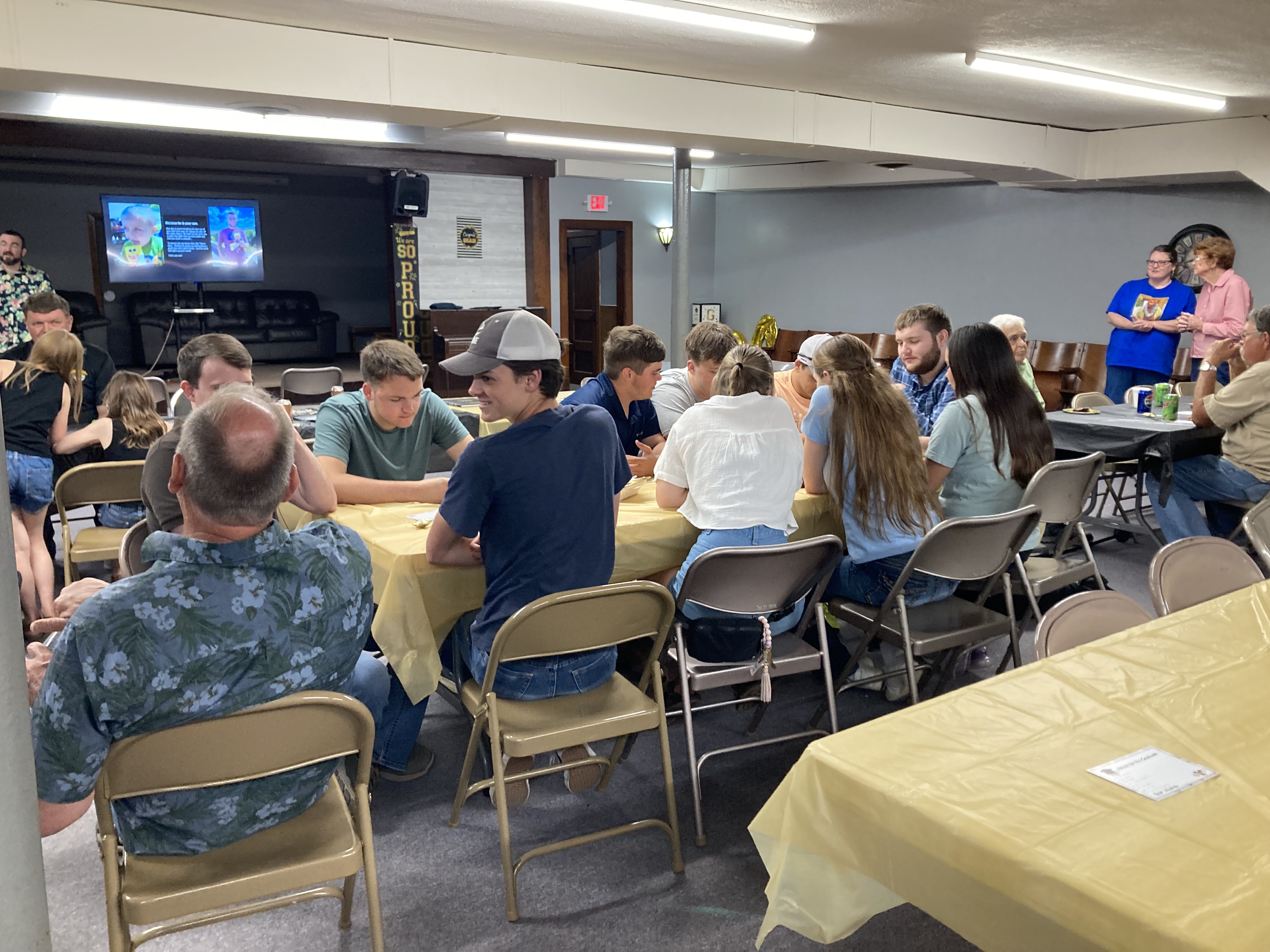 This is the "friend group" at church crowding around the same table at Jayden's graduation party. They've been an absolute joy for my kids.